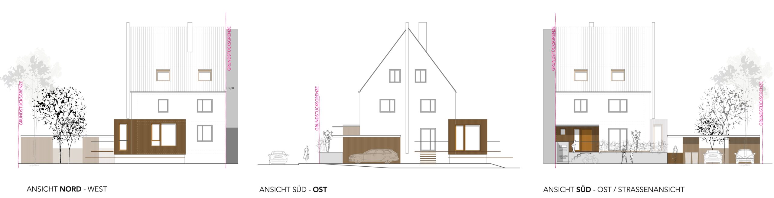 Eine neue Garagenanlage, das Errichten einer Windfanganlage und die Wohnraumerweiterung durch einen gartenseitigen Anbau mit großzügiger Terrassenlandschaft – jeweils mit prägnanter Lärchenleistenfassade – lassen das Haus in einem modernen, harmonischen Gesamtensemble erstrahlen.